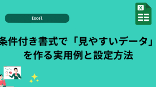 Excel 【仕事が速くなる】Excel条件付き書式で「見やすいデータ」を作る実用例と設定方法 Excelの条件付き書式で、データをもっと『見てわかる』ようにしませんか?営業達成率の可視化、重複チェック、期日管理、重要キーワード強調など、ビジネスで役立つ実用例と設定方法を具体的なデータで徹底解説。あなたのExcel作業を劇的に改善し、仕事効率を向上させるヒントが満載です。 2025.06.26 Excel
